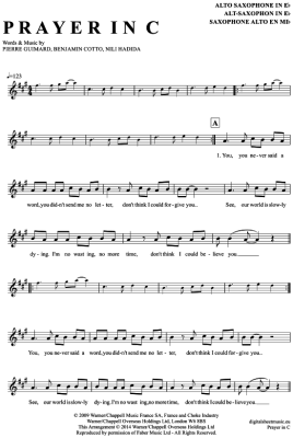 Prayer in C - Sheet Music for Alto Saxophone Lilly Wood & The Prick and Robin Schulz