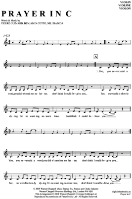 Prayer in C - Sheet Music for violin Lilly Wood & The Prick and Robin Schulz