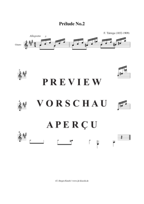Prelude No.2 - Sheet Music for Gitarre Solo Francisco Tarrega (1852-1909)