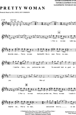 Pretty Woman - Sheet Music for Tenor Saxophone Roy Orbison