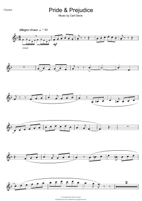Pride And Prejudice - Sheet Music for Carl Davis