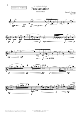 Proclamation (2004) for solo oboe was written for and is dedicated to oboist Toni Marie