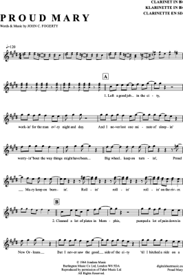 Proud Mary - Sheet Music for Clarinet in B-flat Creedence Clearwater Revival