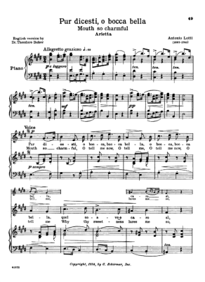 Pur dicesti, o boca bella - Sheet Music for High Voice and Piano Antonio Lotti