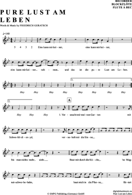 Pure Lust Am Leben - Sheet Music for recorder Geier Sturzflug