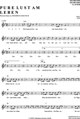 Pure Lust Am Leben - Sheet Music for Keyboard Geier Sturzflug