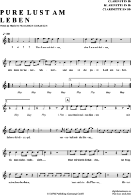 Pure Lust Am Leben - Sheet Music for Clarinet in B-flat Geier Sturzflug