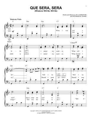 Que Sera, Sera (Whatever Will Be, Will Be) - Sheet Music for Doris Day