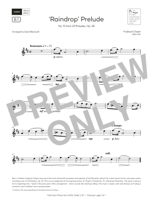 'Raindrop' Prelude (Grade 2, list B1, from the ABRSM Flute Syllabus from 2026) - Sheet Music for Fryderyk Chopin