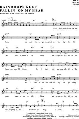 Raindrops Keep Fallin´ On My Head - Sheet Music for vocals B. J. Thomas