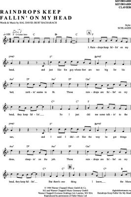 Raindrops Keep Fallin´ On My Head - Sheet Music for Keyboard B. J. Thomas