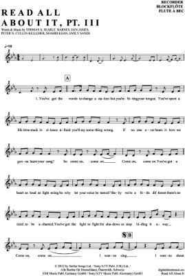 Read all about it Pt. III - Sheet Music for recorder Emeli Sande