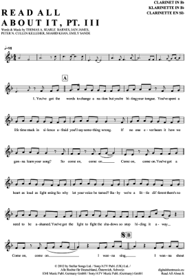 Read all about it Pt. III - Sheet Music for Clarinet in B-flat Emeli Sande