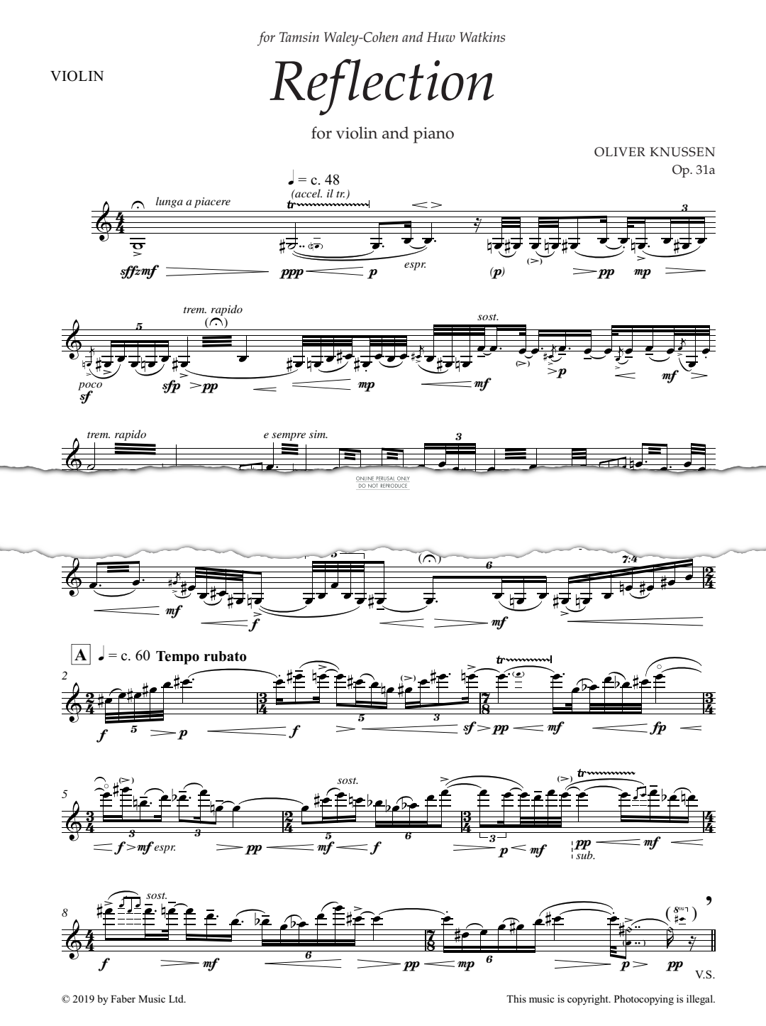 This is the violin part only of Reflection Op.31a, composed by Oliver Knussen, for violin and piano in digital sheet music format.
