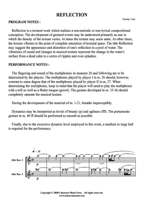 Reflection - Sheet Music for 2x alto saxophone Timothy Crist