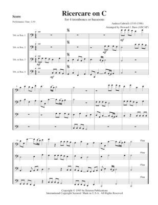 Ricercare on C - Sheet Music for 4 Bassoons Andrea Gabrieli