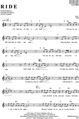 Ride - Sheet Music for Keyboard Lana del Rey