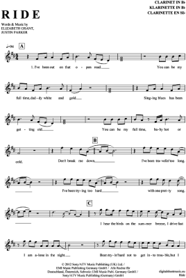 Ride - Sheet Music for Clarinet in B-flat Lana del Rey