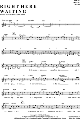 Right Here Waiting - Sheet Music for vocals Richard Marx