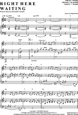 Right Here Waiting - Sheet Music for Voice with Piano Accompaniment Richard Marx
