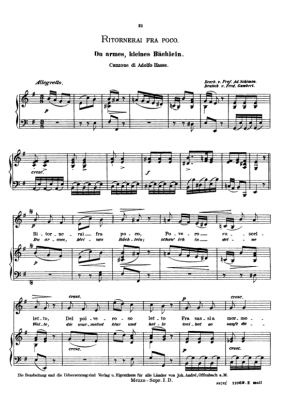 Ritornerai fra poco - Sheet Music for Medium Voice and Piano Johann Adolph Hasse