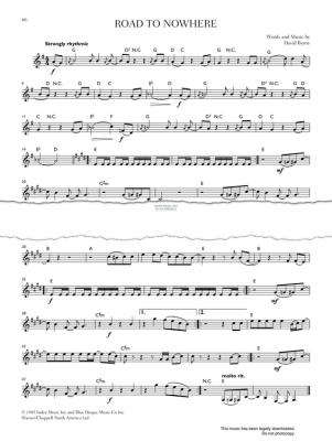 Road To Nowhere, composed by David Byrne and arranged for clarinet solo in digital sheet music format.