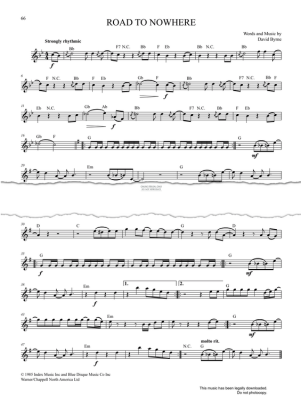 Road To Nowhere, composed by David Byrne and arranged for saxophone solo in digital sheet music format.