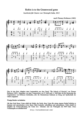 Robin is to the Greenwood gone - Sheet Music for Guitar sheet music + TAB Thomas Robinson (arr. Christoph Dalitz)