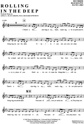 Rolling in the deep - Sheet Music for recorder Adele