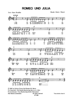 Romeo und Julia - Sheet Music for vocals + chords Peggy March