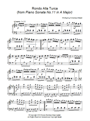 Rondo Alla Turca, from the Piano Sonata A Major, K331 - Sheet Music for Wolfgang Amadeus Mozart