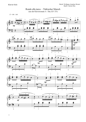 Rondo alla Turca - Sheet Music for Piano Solo Wolfgang Amadeus Mozart