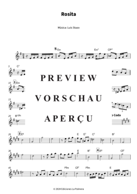 Diese Ausgabe enthält die Originalnoten des Musikstückes "Rosita" von Luis Stazo als Leadsheet. Mittlerer Schwierigkeitsgrad in E-Dur.