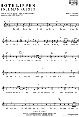 Rote Lippen soll man küssen - Sheet Music for Keyboard Cliff Richard