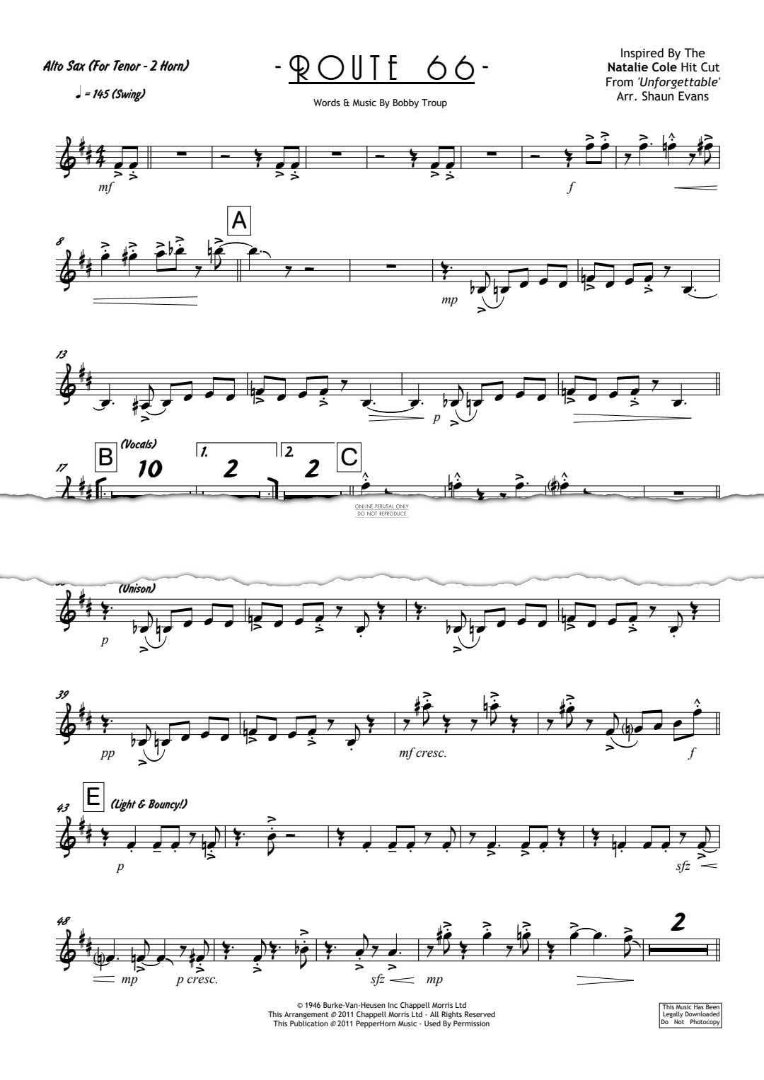 This is an Alto Sax part to replace Tenor Sax for the 2 Horn arrangement of Route 66, inspired by Natalie Cole.