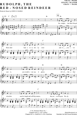 Rudolph the red-nosed Reindeer - Sheet Music for Piano and Voice Weihnachts-Pop / Christmas-Song