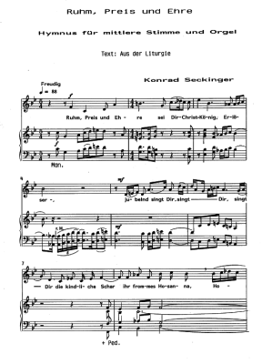 Ruhm, Preis und Ehre - Sheet Music for Baritone/Mezzo-soprana + Organ Konrad Seckinger (Liturgie)