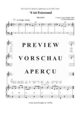 'S ist Feieromd - Sheet Music for accordion and vocals Traditional/Franz Zaunschirm