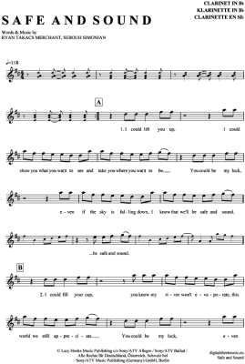 Safe and sound - Sheet Music for Clarinet in B-flat Capital Cities