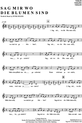 Sag mir wo die Blumen sind - Sheet Music for violin Marlene Dietrich
