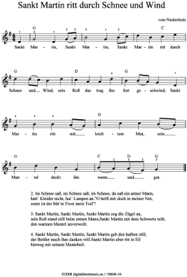 Sankt Martin ritt durch Schnee und Wind - Sheet Music for Keyboard Martinslied, Laternenlied