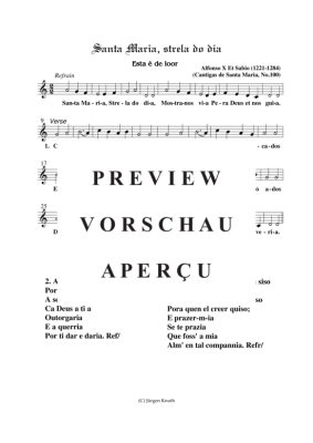 Santa Maria, strela do dia (Esta e de loor) - Sheet Music for mixed choir + soli Alfonso X Et Sabio (1221-1284)