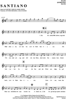 Santiano - Sheet Music for transverse flute Santiano