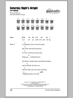 Saturday Night's Alright (For Fighting) - Sheet Music for Elton John