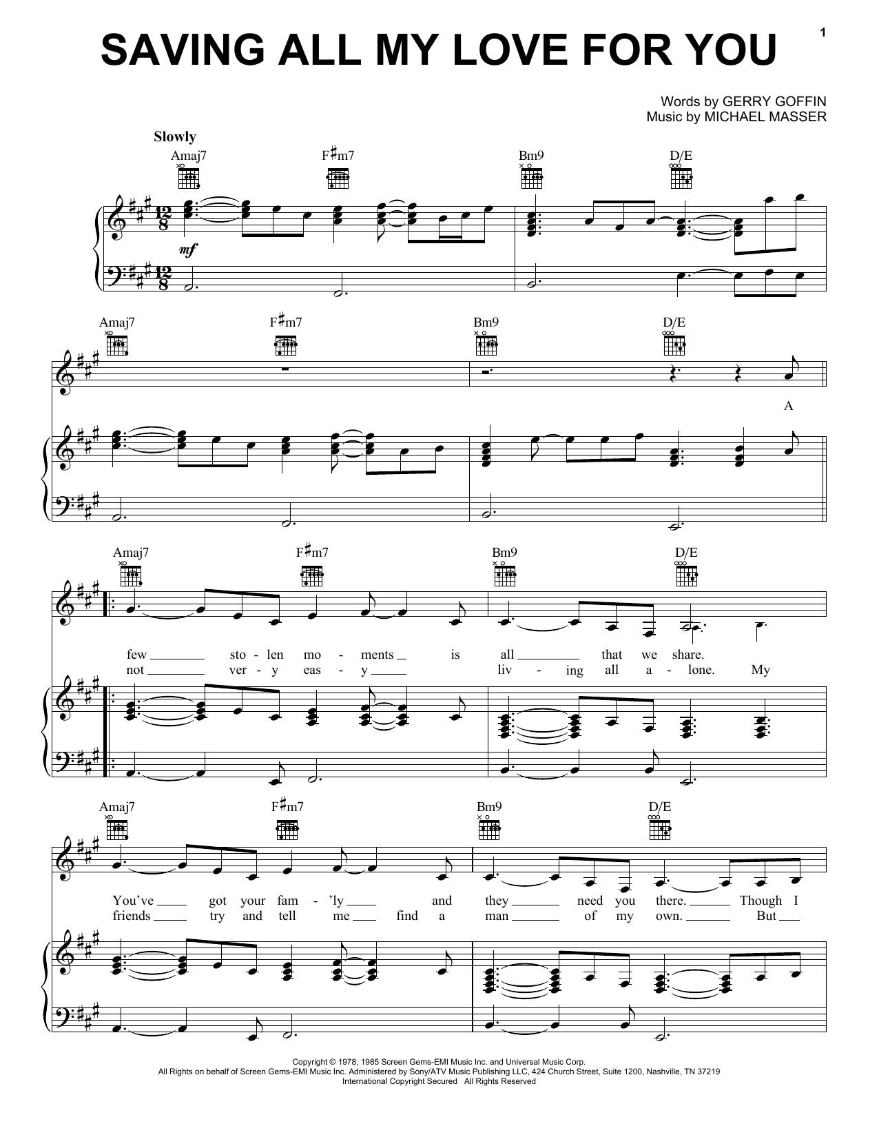 Saving All My Love For You (Piano, Vocal & Guitar Chords (Right-Hand Melody))