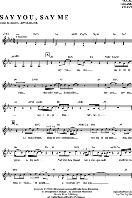 Say You, Say Me - Sheet Music for vocals Lionel Richie