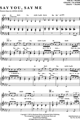 Say You, Say Me - Sheet Music for Piano and Voice Lionel Richie