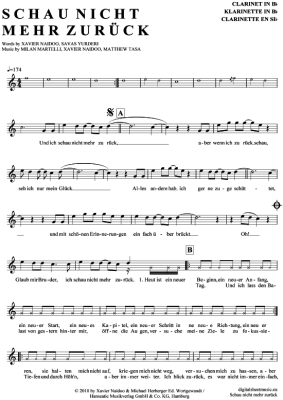 Schau nicht mehr zurück - Sheet Music for Clarinet in B-flat Xavas