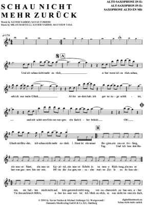 Schau nicht mehr zurück - Sheet Music for Alto Saxophone Xavas