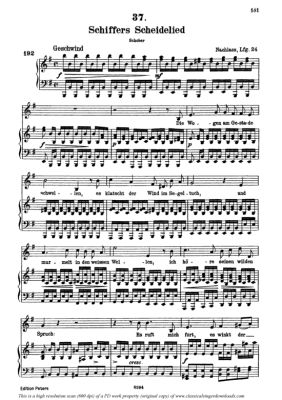 Schiffers Scheidelied D.910 - Sheet Music for High Voice and Piano Franz Schubert